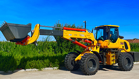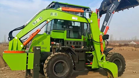 連接復(fù)合動(dòng)作一拖二操作手柄,簡介易操作由于它具有共同的結(jié)構(gòu),前端是裝載設(shè)備,后端為發(fā)掘設(shè)備。在施工時(shí),操作手只需求翻滾一下座椅,就可以結(jié)束從裝載機(jī)到發(fā)掘機(jī)的改動(dòng)
